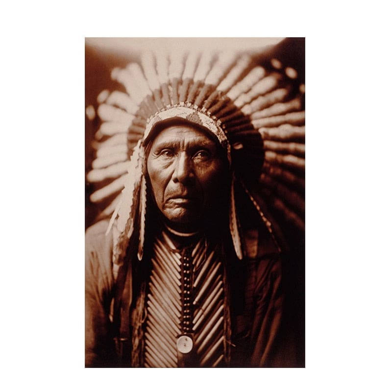 Découvrez le portrait saisissant d’un Chef de Tribu légendaire, surnommé Nuage Noir. Cet Hommage aux Peuples Autochtones se décline en nuances chaudes évoquant les récits ancestraux. Vous trouverez une variété de dimensions pour s’adapter parfaitement à votre espace !
