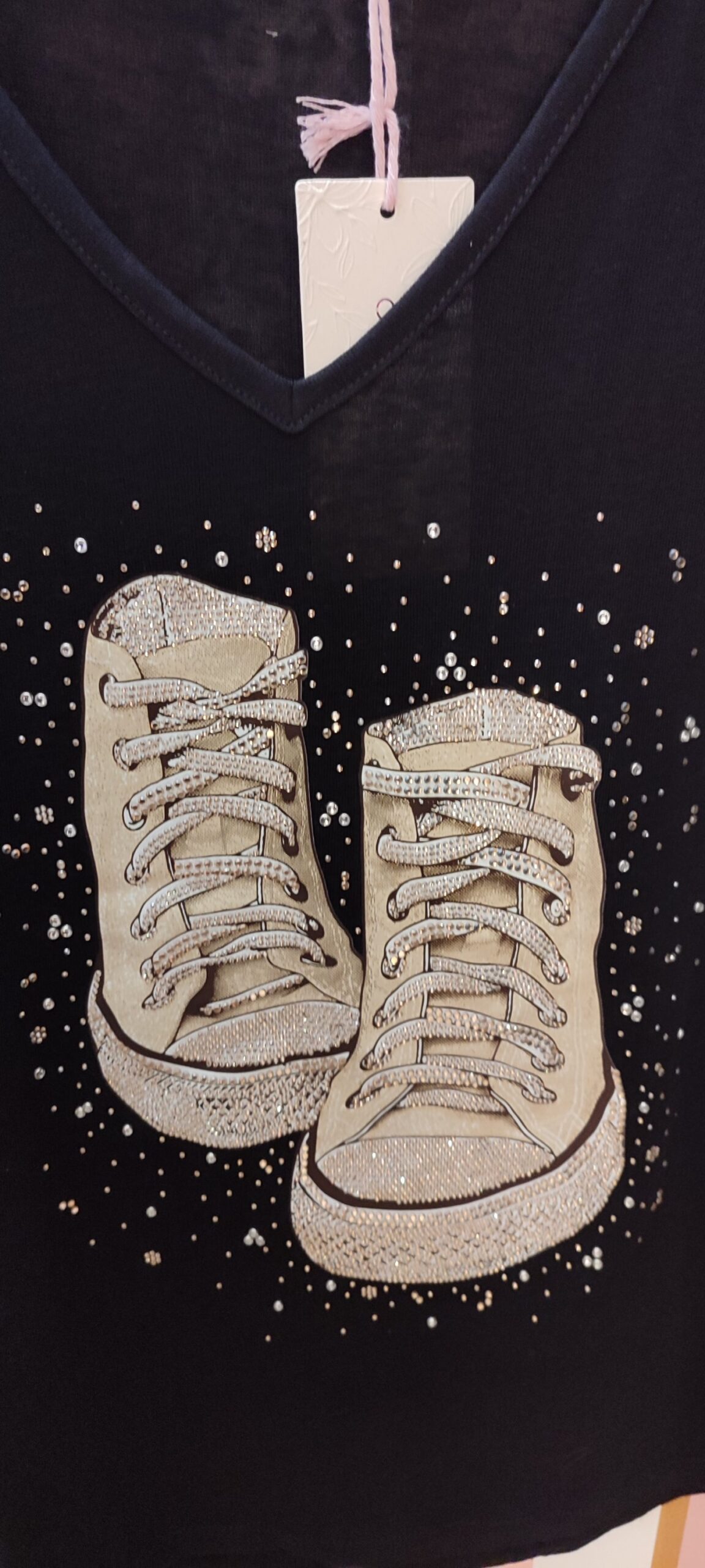 Tee-shirt baskets strass noir et beige