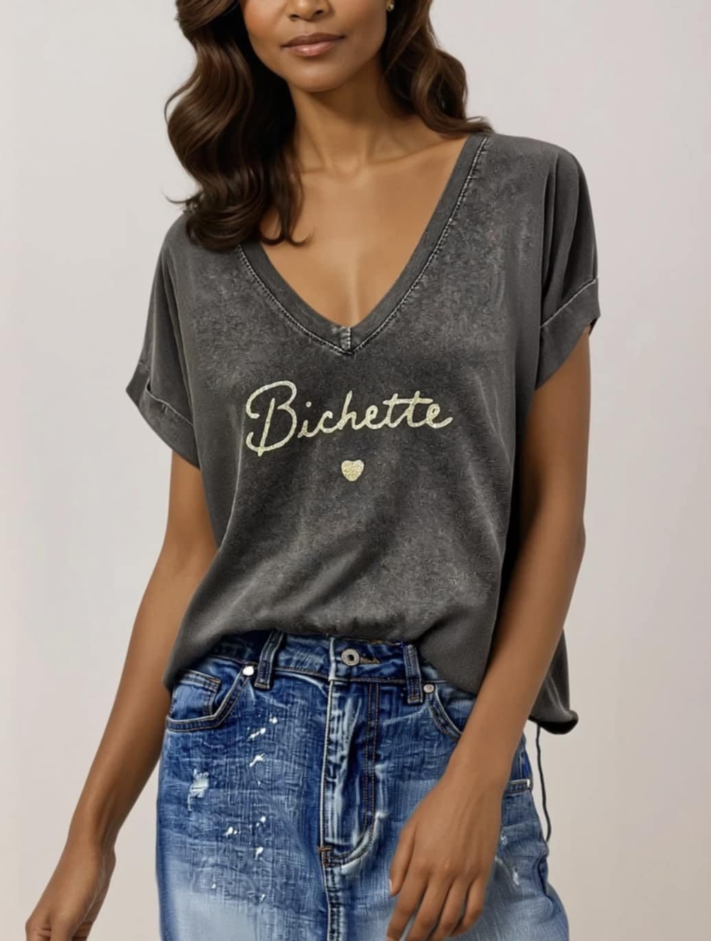 Tee-shirt bichette coeur col v