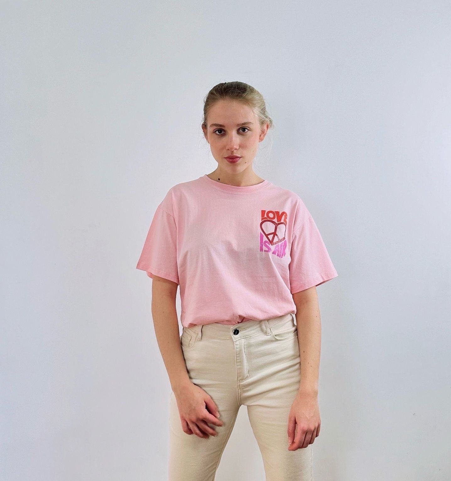 Tee-shirt rose love paillettes imprimé dos