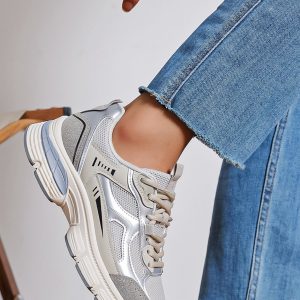 Ces sneakers sont dotées d’une semelle compensée qui rehausse discrètement la silhouette avec un talon de 3 cm, tout en conservant une démarche naturelle et stable. La fermeture par lacet rond assure un bon maintien, tandis que le contrefort arrière renforcé permet d’enfiler les chaussures facilement sans avoir à dénouer les lacets à chaque fois.