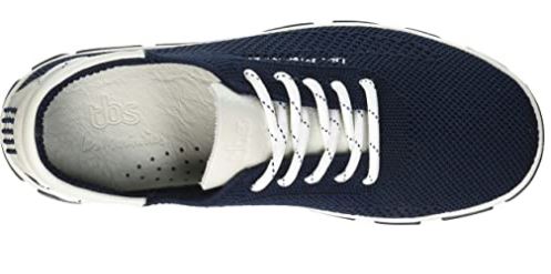 Un modèle iconique de chez TBS revisité cette saison avec des matières éco-conçues. L’empeigne est tissée d’un seul tenant en fils polyester recyclés. Cette construction confère un confort inégalé et une grande souplesse à ces sneakers. En effet, ces tennis sont connus pour leur souplesse. La nouveauté est portée sur la matière recyclée. La semelle intérieure amovible est en cuir afin de garder le pied dans un environnement sain. Le talon plat assure stabilité et confort, tandis que le bout rond permet une certaine aisance au niveau des orteils. Le talon comporte des picots bleus disposés sur un empiècement en cuir blanc, créant ainsi un effet contemporain tout en évoquant subtilement le logo de la marque. Associées à un pantacourt, un short ou une robe d’été ces baskets apporteront une touche de fraîcheur à toutes vos tenues. Ces tennis s’enfile à l’aide d’un lacet blanc fantaisie pour un bon maintien du pied.