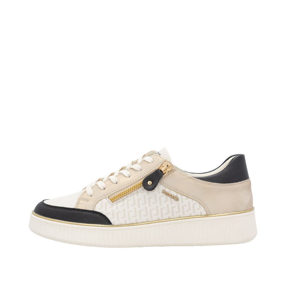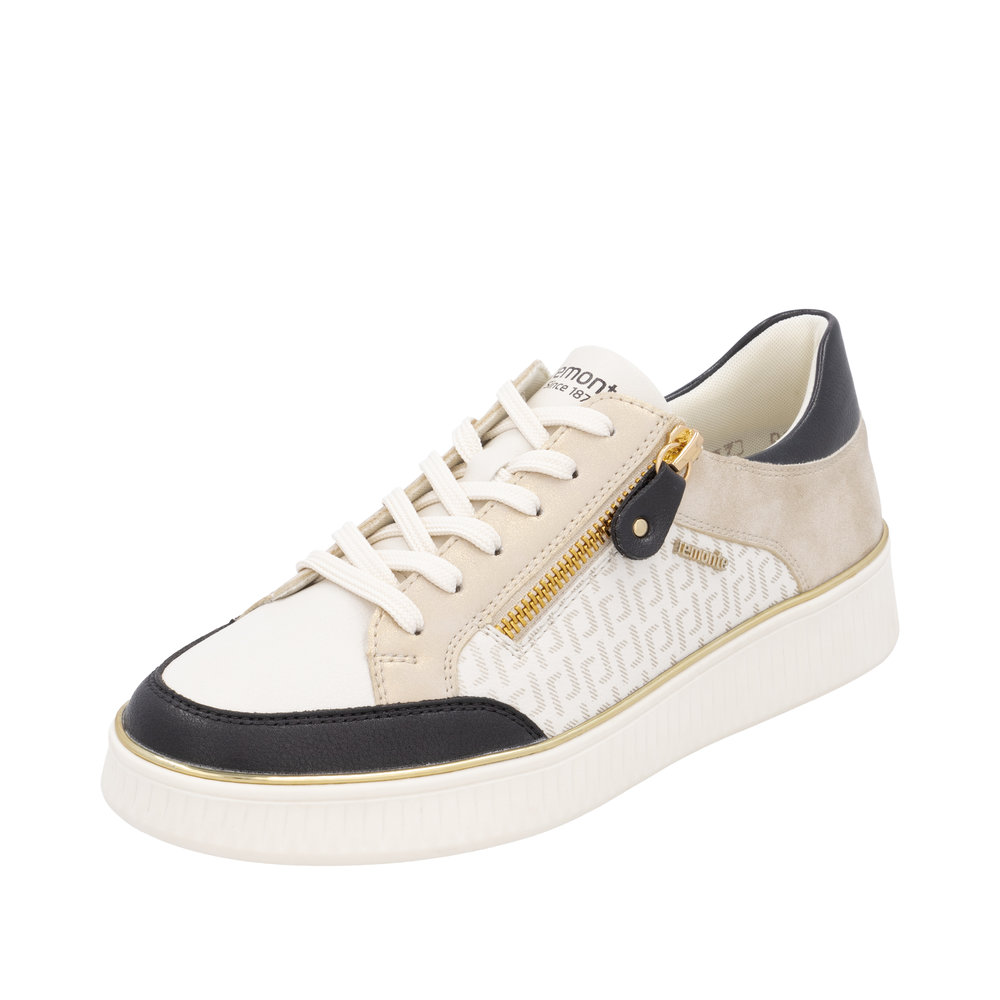 Tennis Mode femme Largeur confort Semelle plateau Lacet + fermeture éclair REMONTE D2E04 80 coloris blanc beige noir