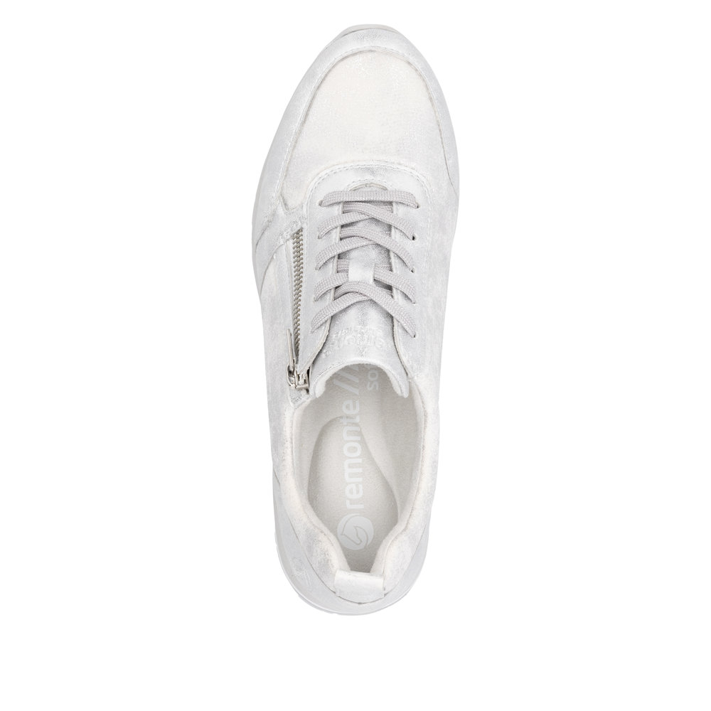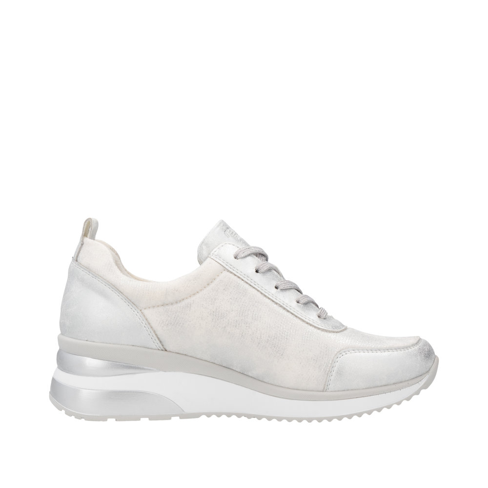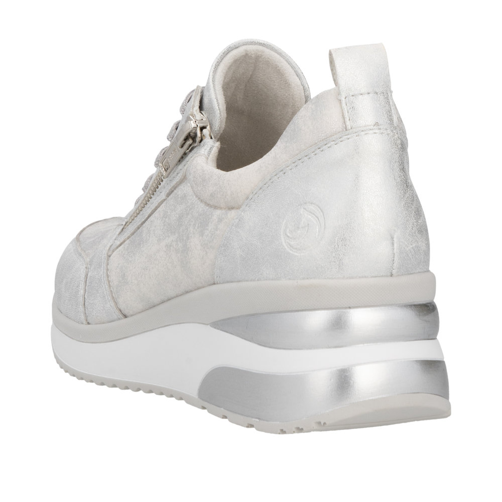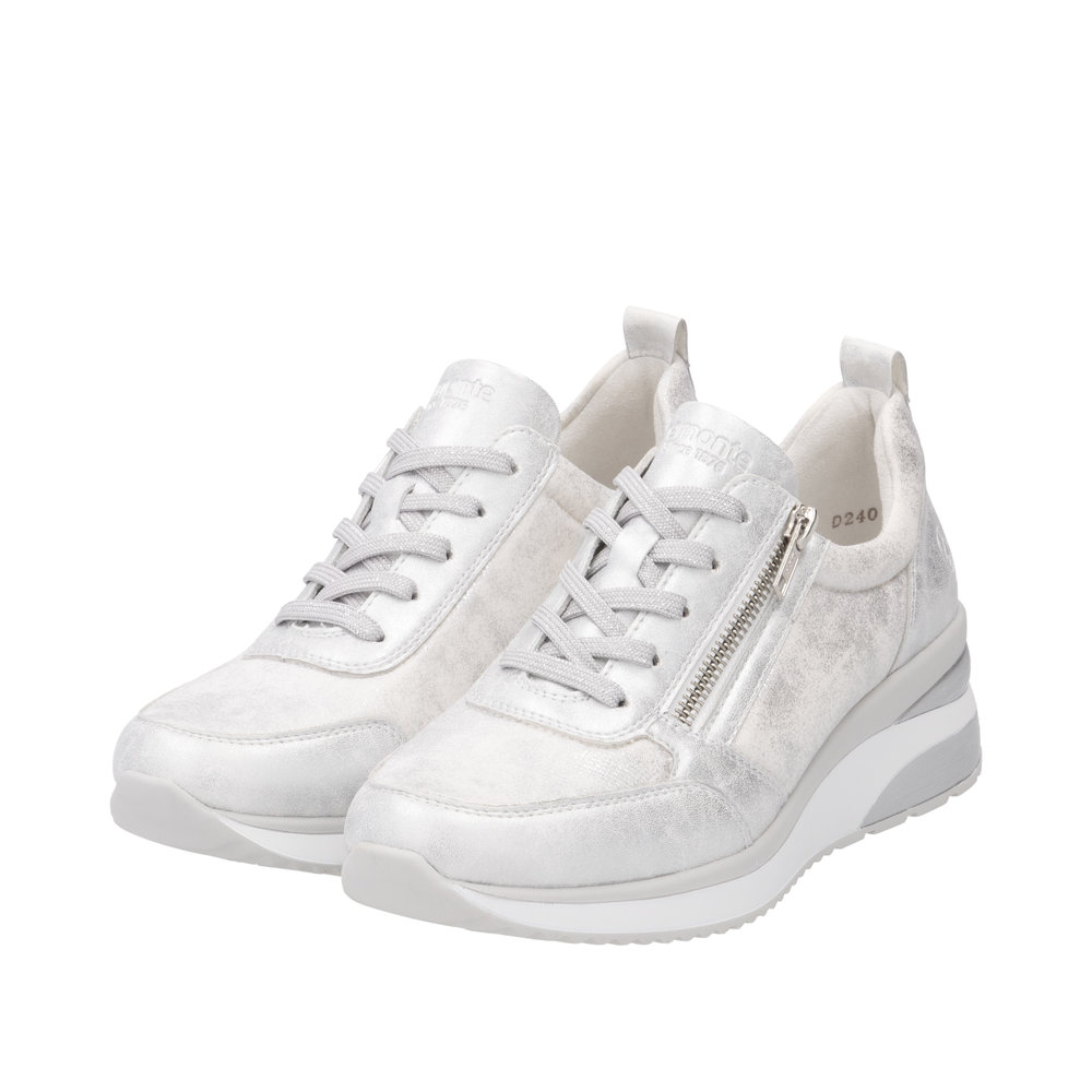 Tennis mode femme Stretch Talons compensé Lacet + zip REMONTE D2401-93 coloris blanc argenté