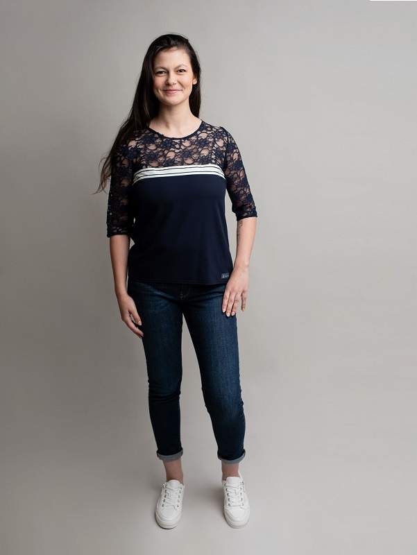 - Top bleu marine en dentelle manches longues
