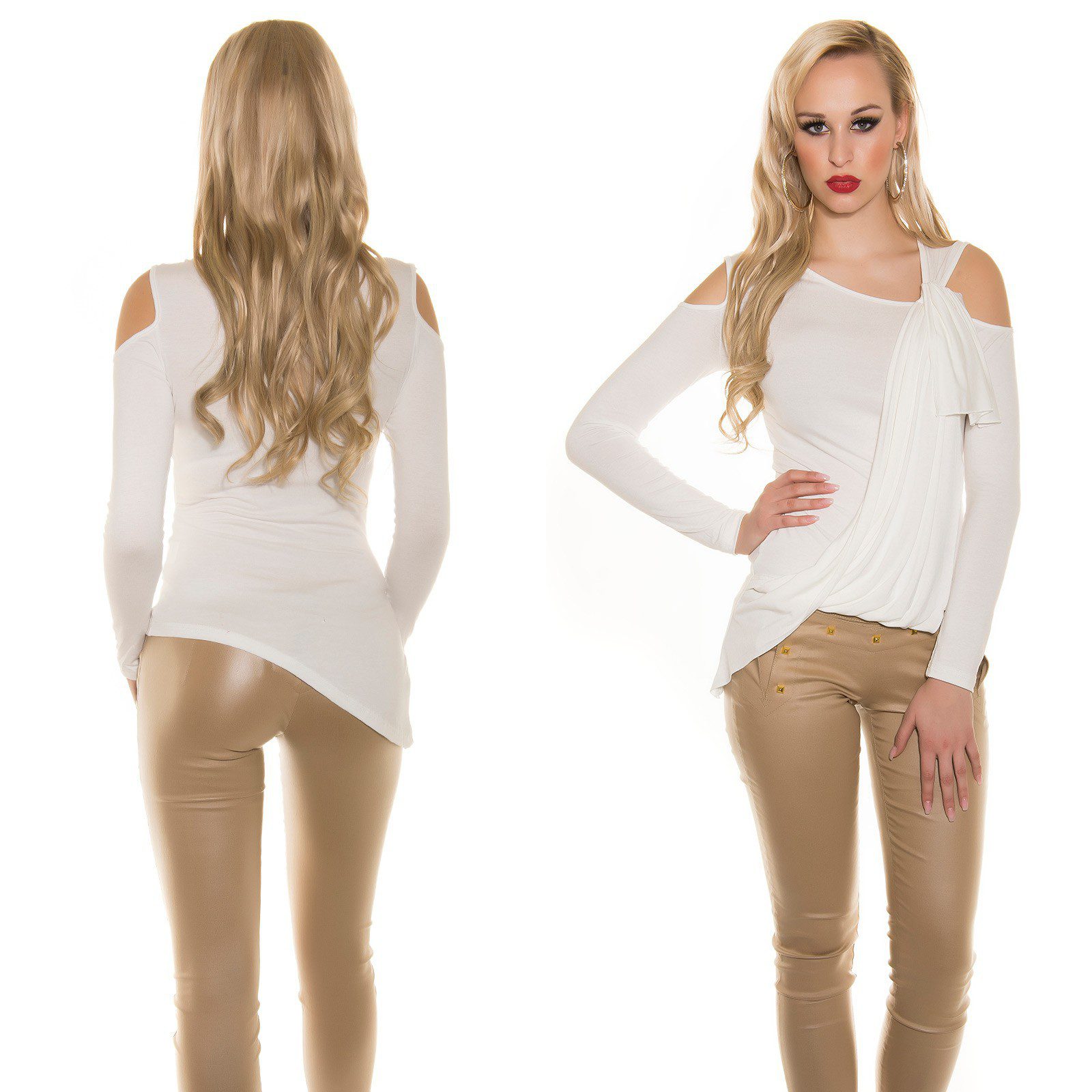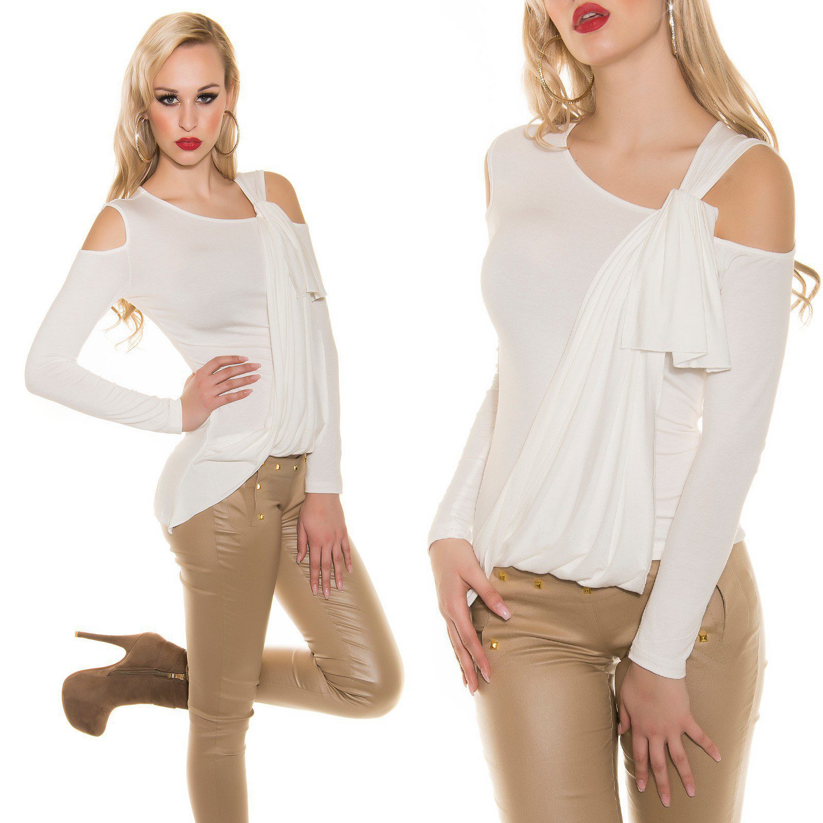 Top femme tendance ultra original dévoilant vos épaules et son drapé noué devant vous donne un style fashion et sexy !