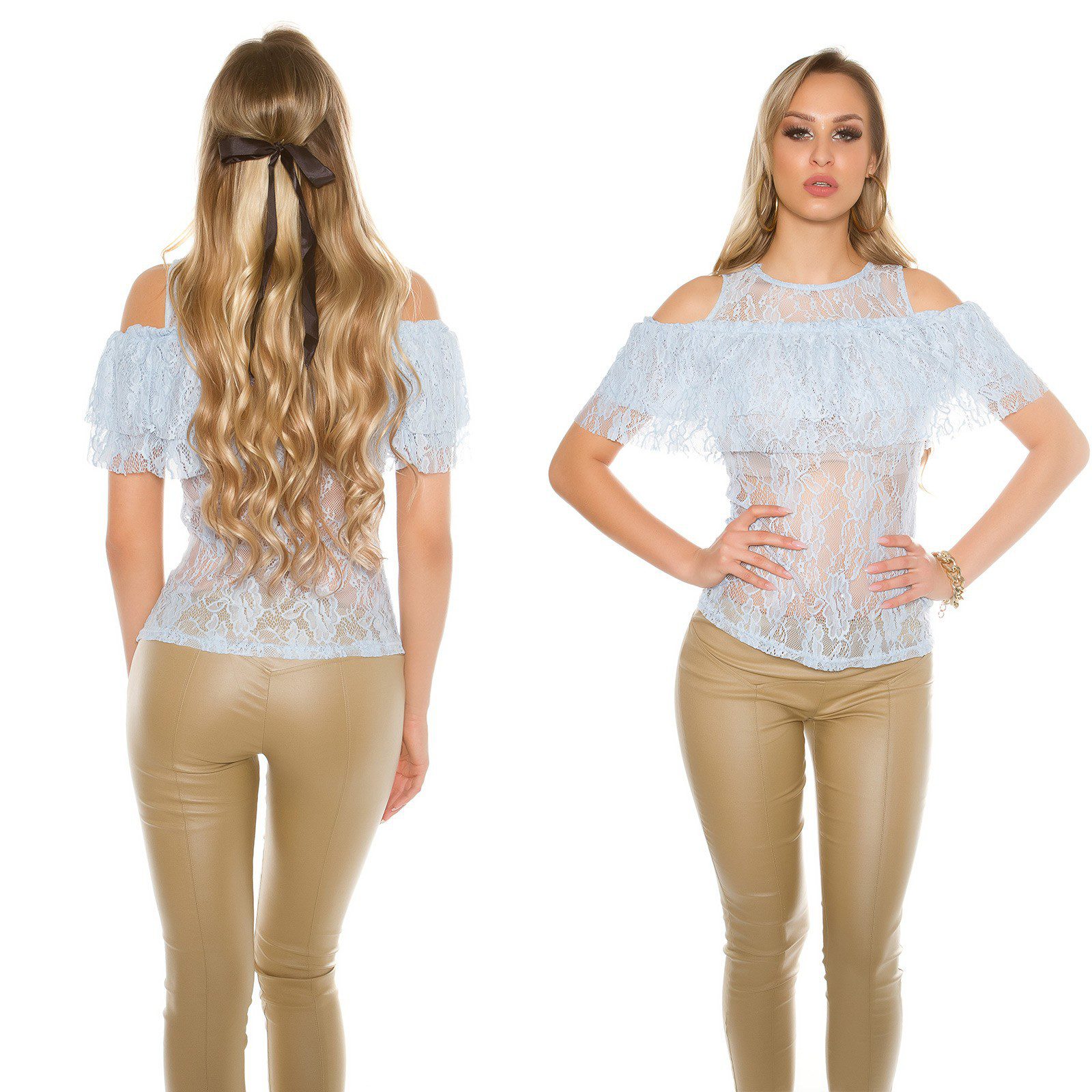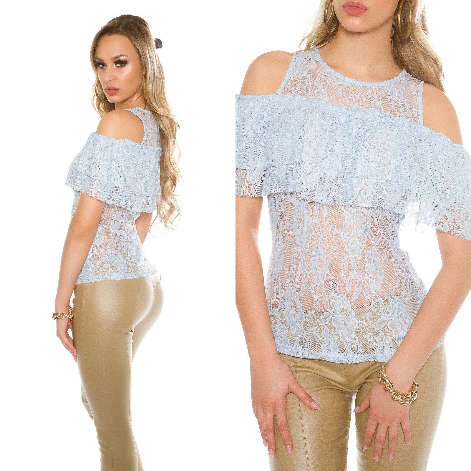 Top tout en dentelle large col sexy MELYSSA couleur bleu clair