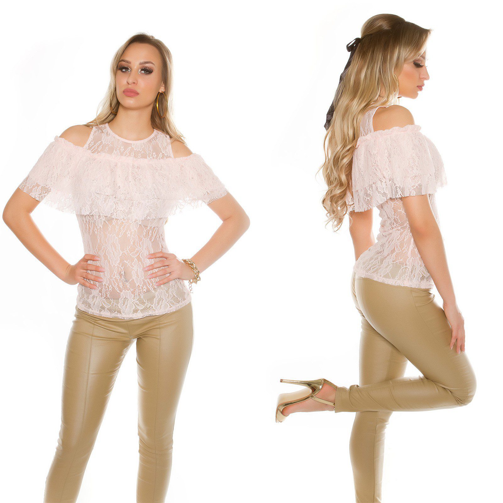 Top tout en dentelle large col sexy MELYSSA couleur saumon