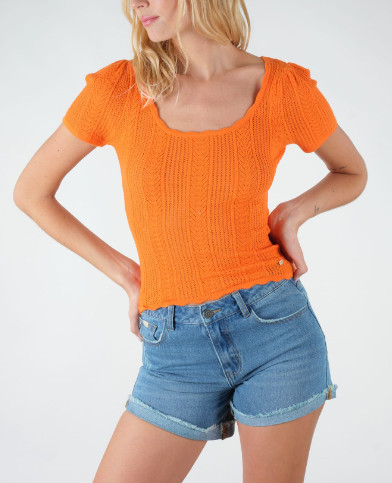 Tshirt manches courtes en maille ajourée extensible. Encolure ronde.