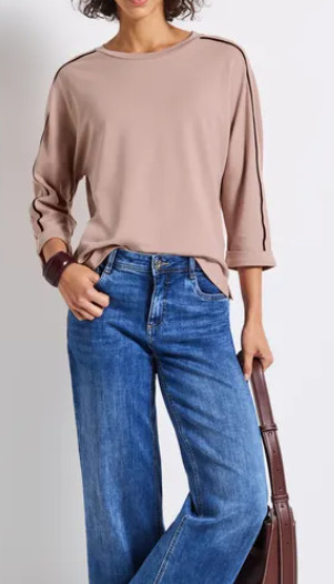 Tshirt manches 3/4 encolure ronde. Bande gallon contrasté au niveau des manches. La douce qualité jersey d’un mélange de coton et de modal avec une part de stretch assure un confort particulièrement agréable. Des fentes latérales à l’ourlet complètent le look féminin de manière décontractée.