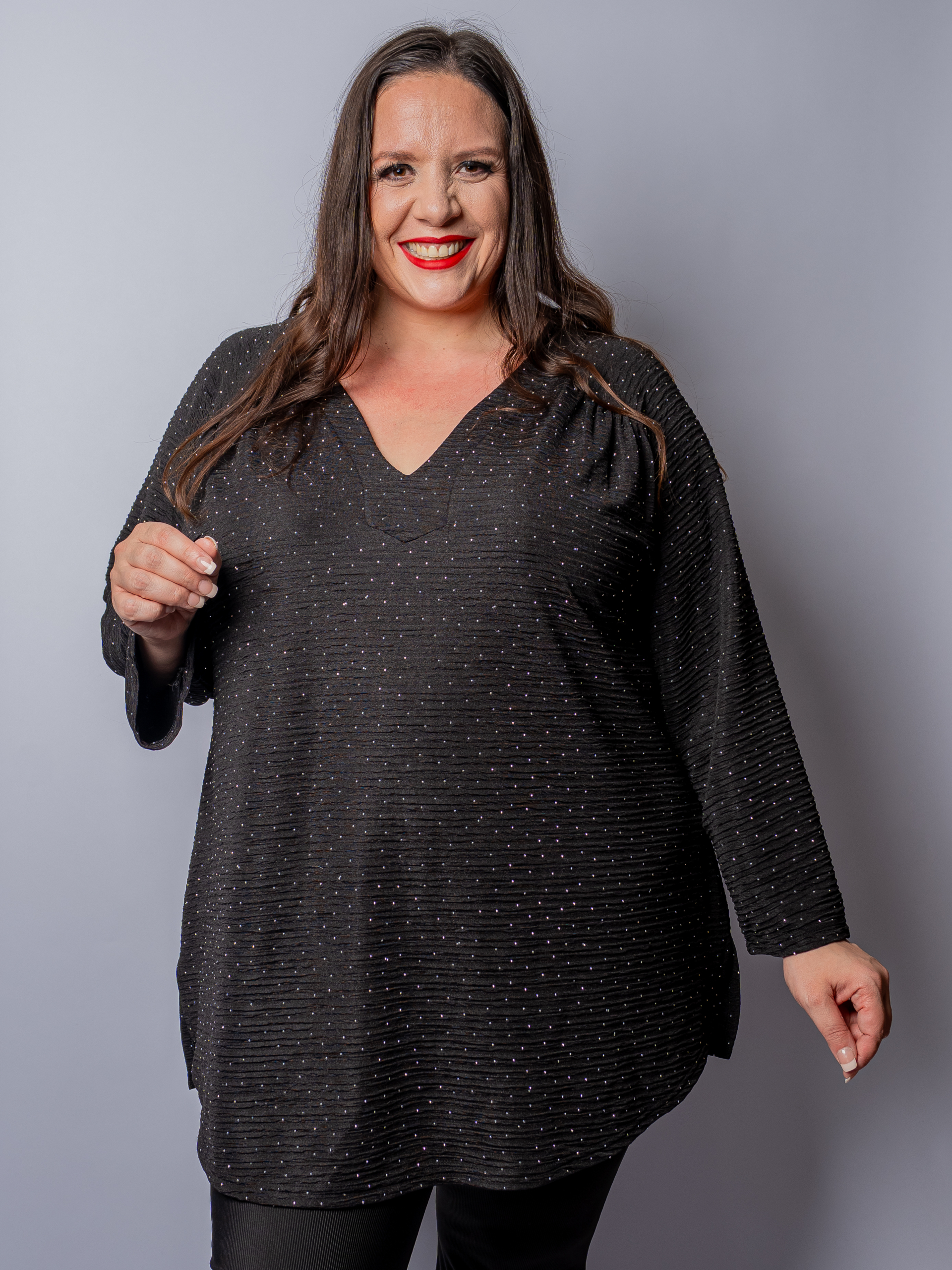 Tunique en Matière Gaufrée à Clous Strass – L’Élégance Audacieuse