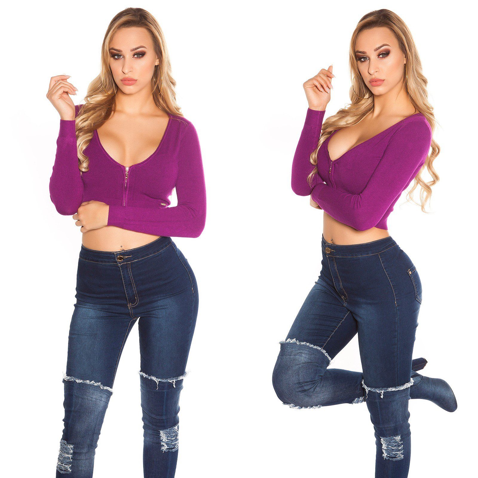 Veste boléro tendance avec zip. ULTRA SEXY et confortable Cette veste boléro avec fermeture éclair dorée surmontée d’un fermoir papillon est signée KOUCLA pour les filles tendances !