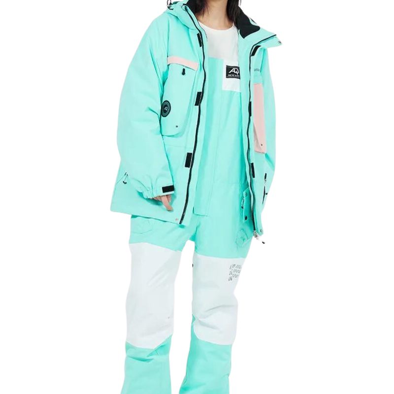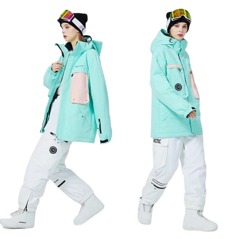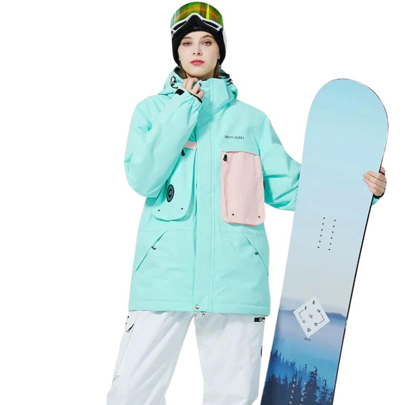 Veste de ski femme bleue fluo design