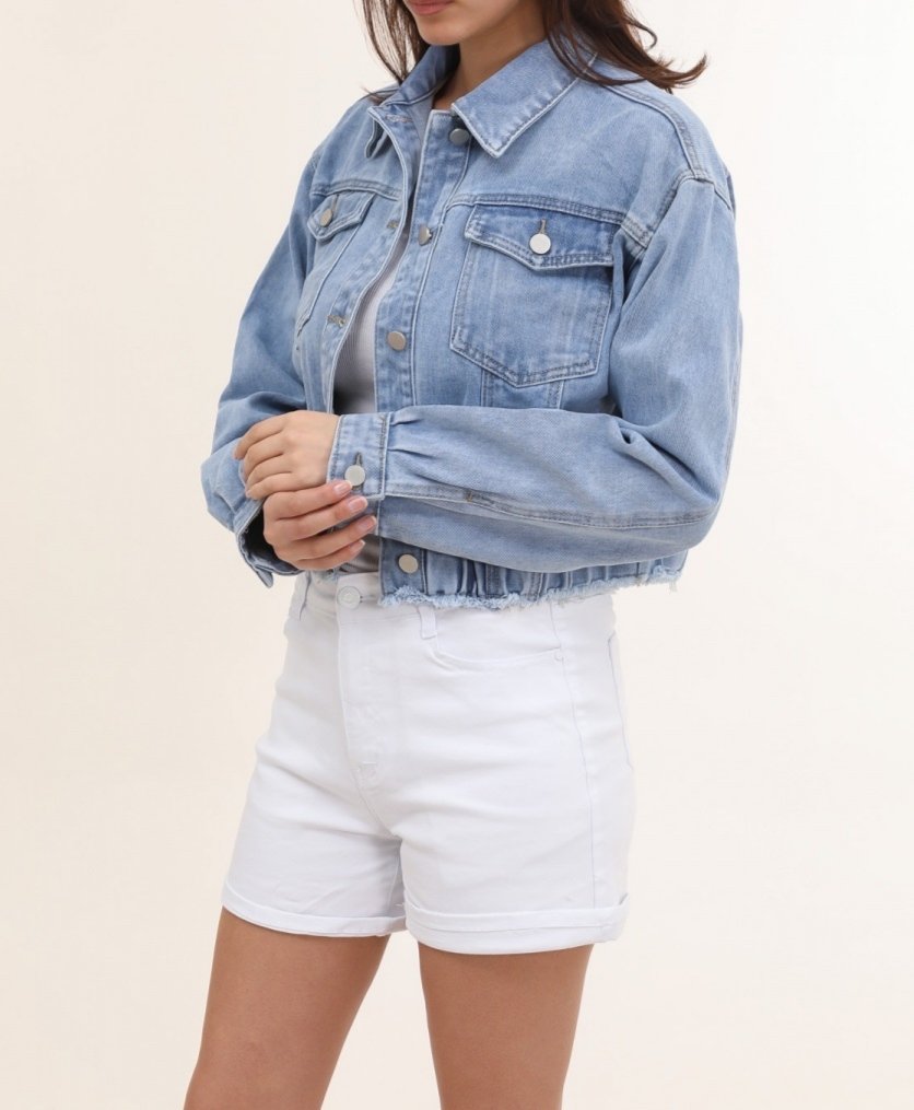Veste en jeans bas élastique bleu clair