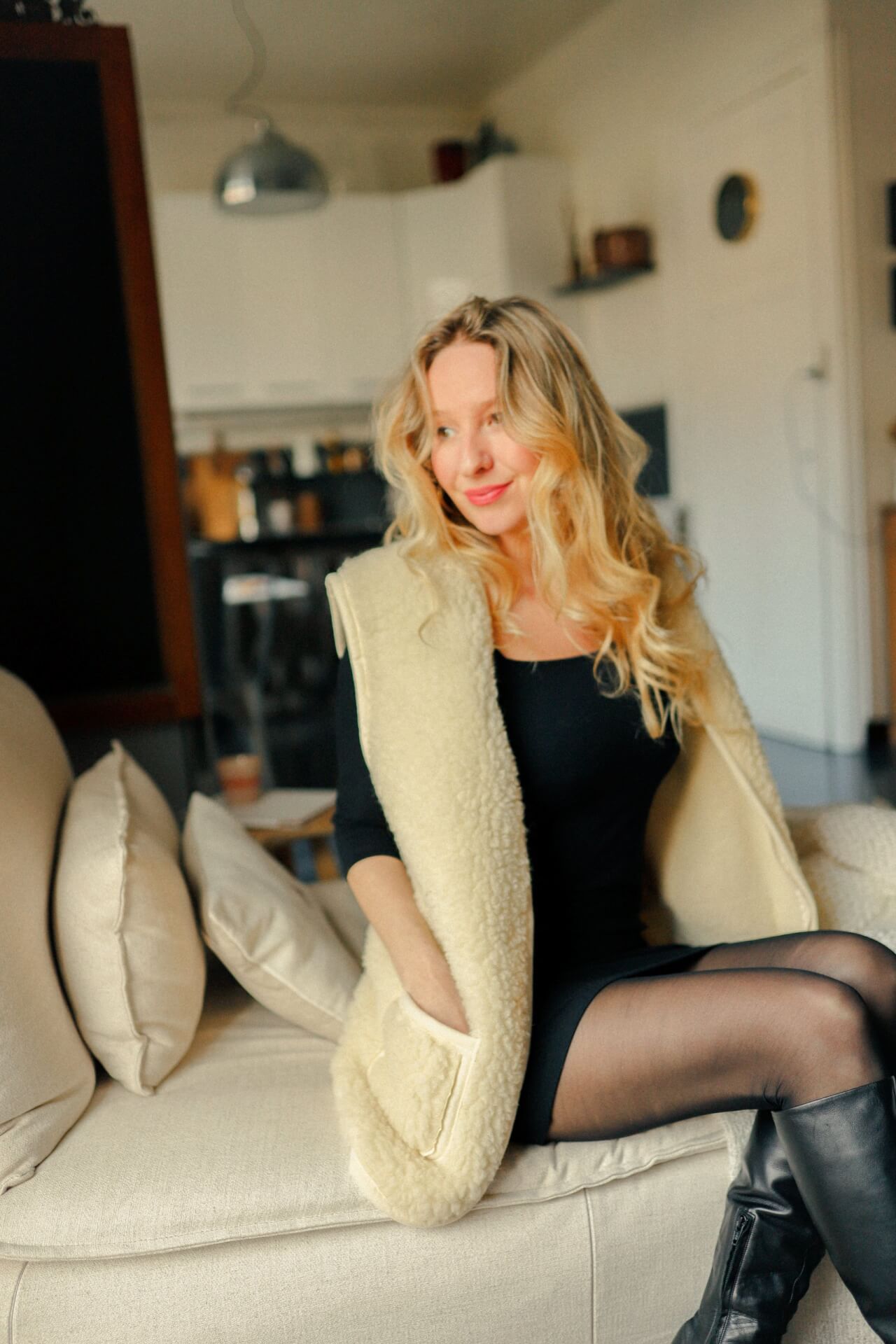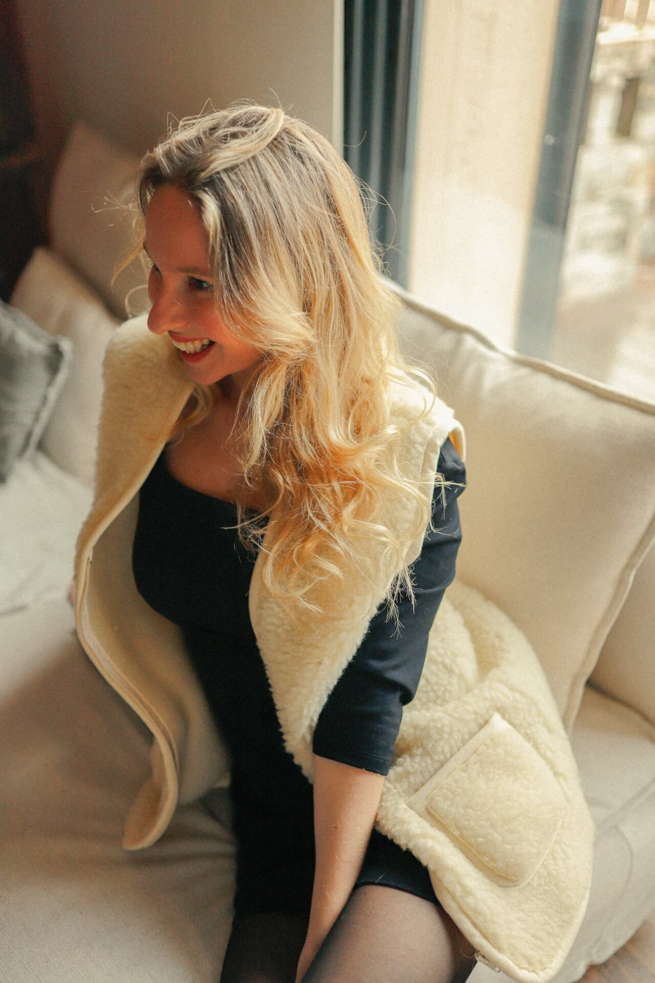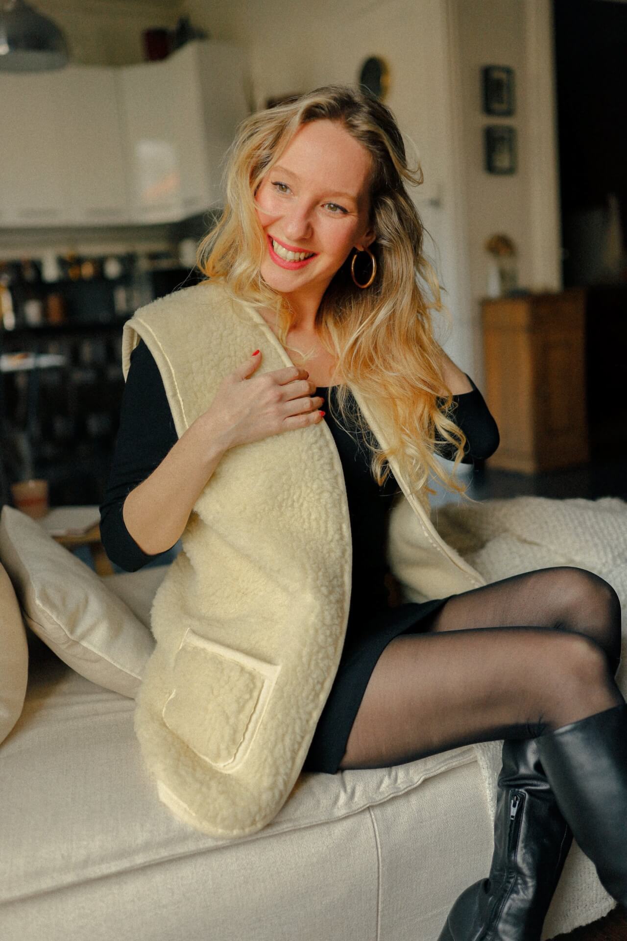 Vous pourrez choisir de la porter près du corps ou carrément oversize pour qu’il couvre les fesses et caler plus de couches en dessous encore. C’est un gilet plus qu’astucieux, confortable parfaitement dans la tendance de l’hiver 2023 (& many more) qui vous sauvera la mise plus d’une fois que vous soyez en talons pour aller au travail ou en petites baskets le week-end. On loge sous lui toutes les robes et chemises d’Odette, je ne quitte plus le mien depuis que je l’ai, attention, il est addictif 🙂