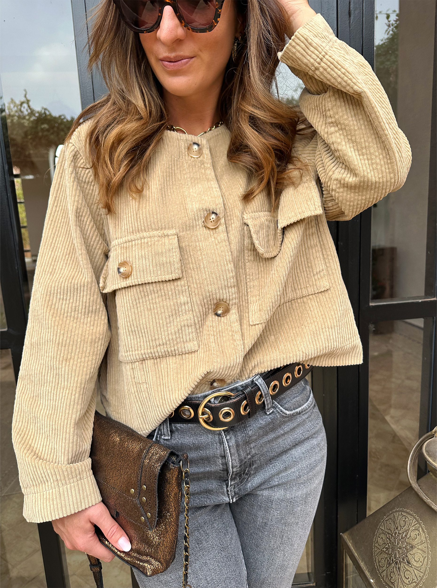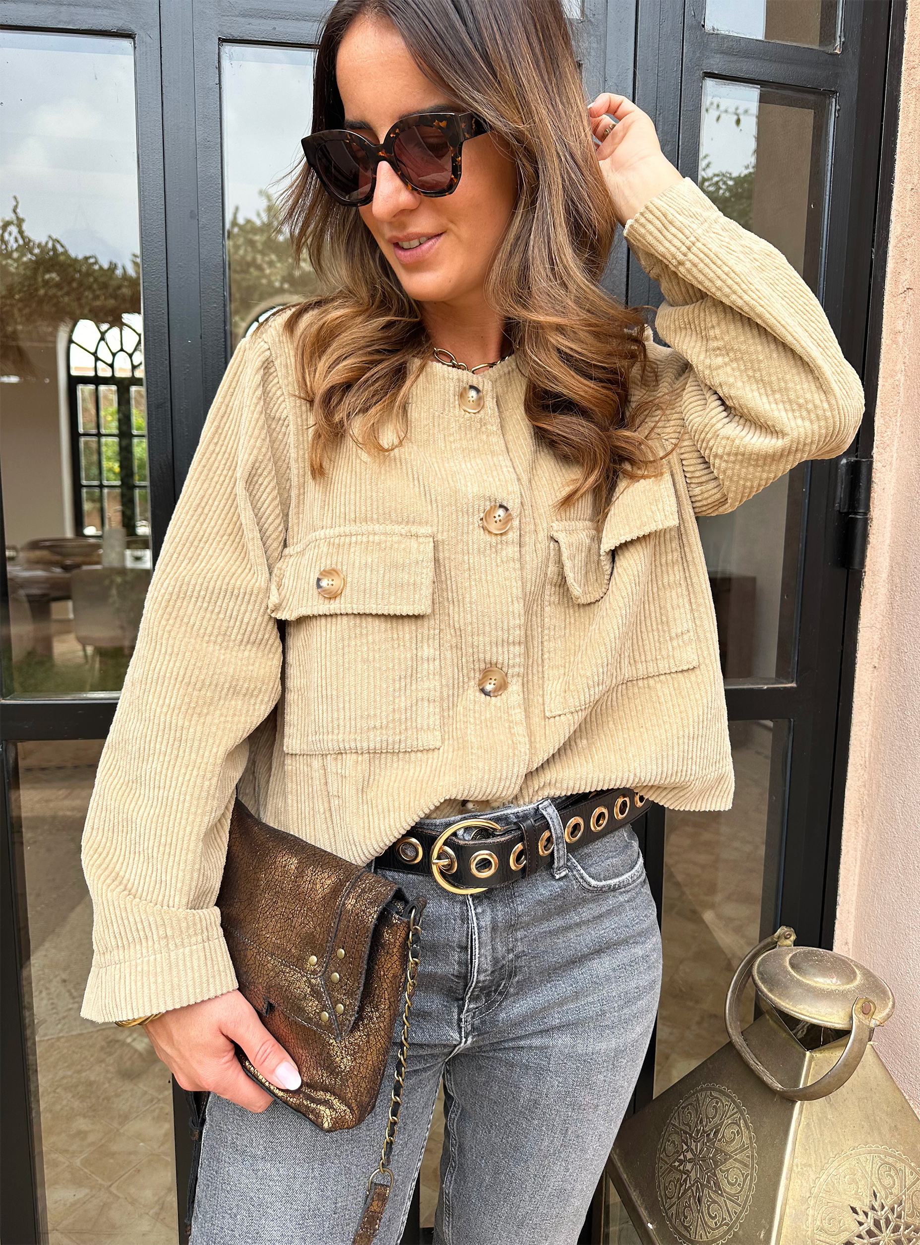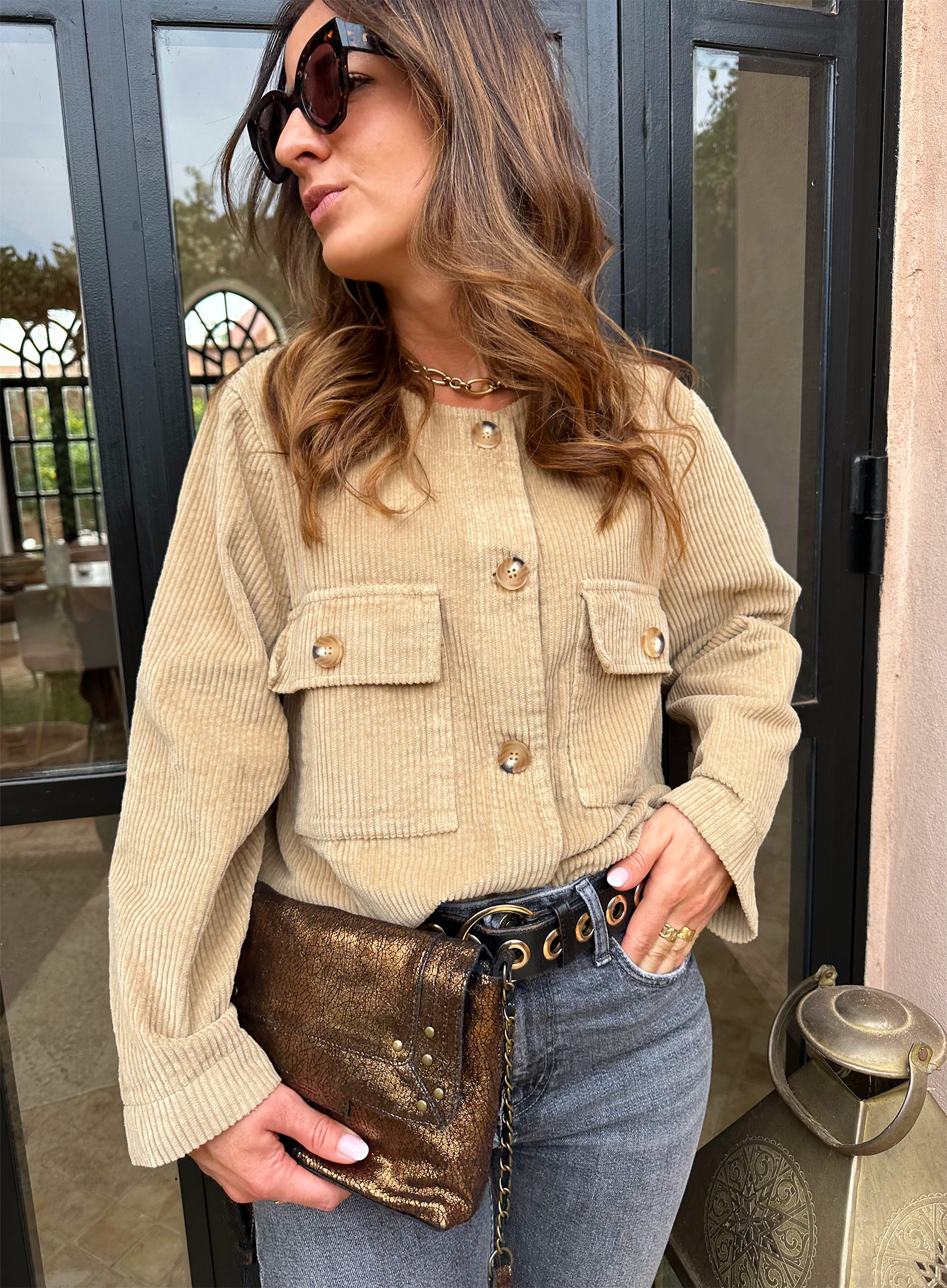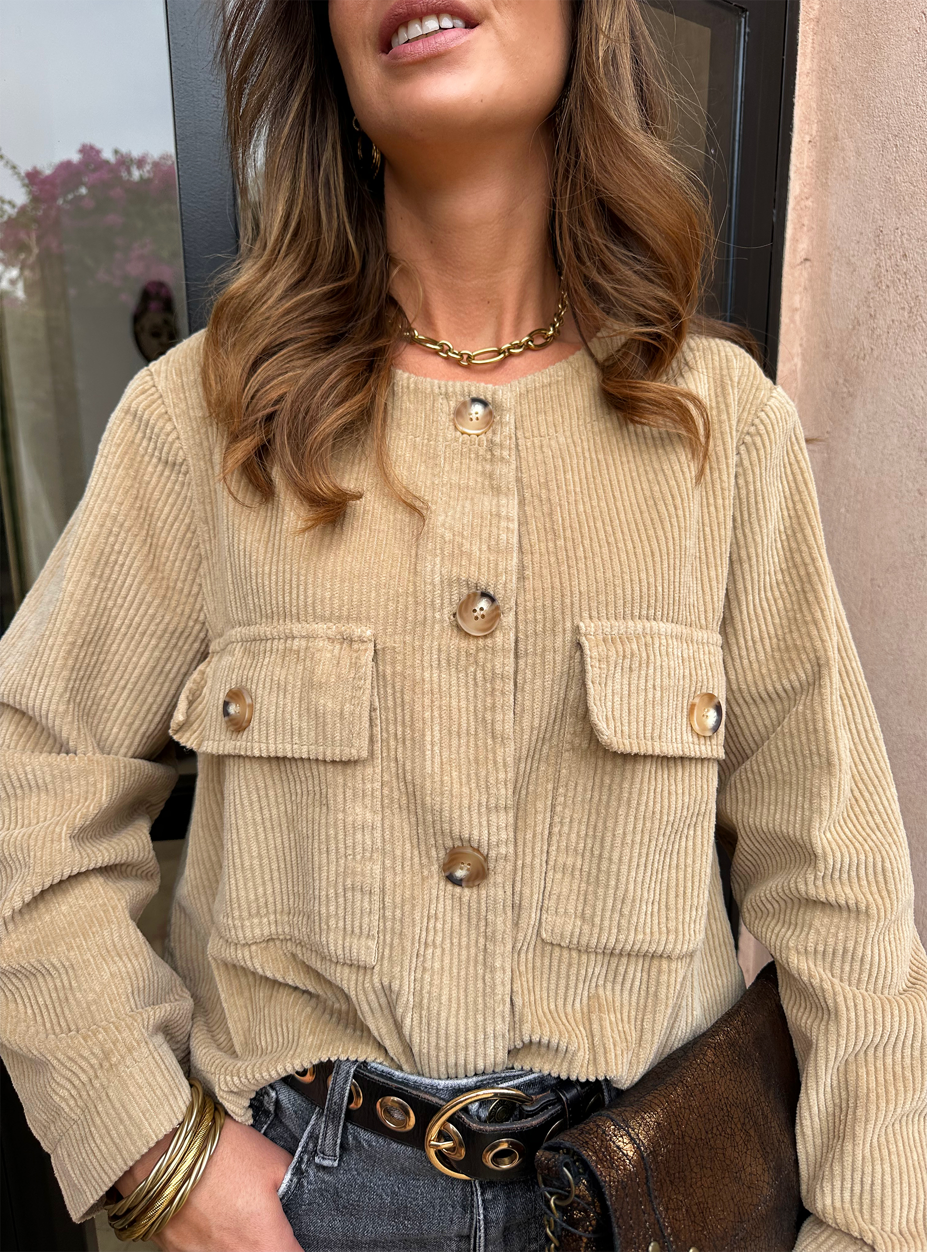 JUNE est une veste courte en velours camel à l’allure terriblement chic et mode !