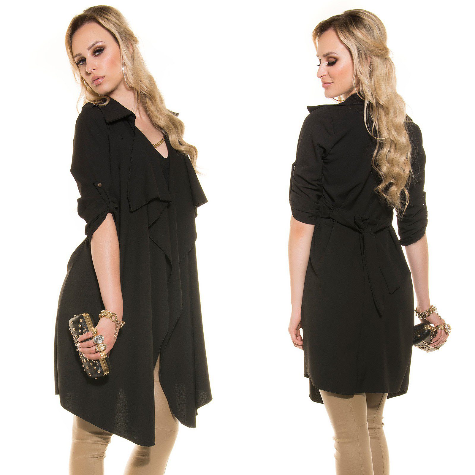 Veste longue avec ceinture LOANE couleur noir – vetements femme style fashion, tendance et sexy à prix cassé – newfashion,fr