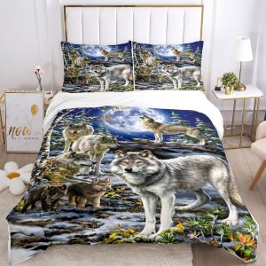 Housse de Couette LoupForêt Sauvage Nocturne