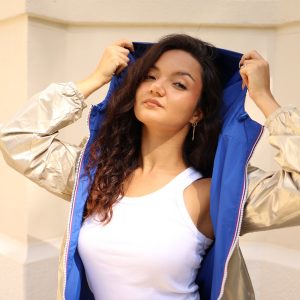 Imperméable réversible bleu roi-or