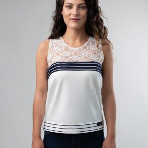 Top en dentelle blanche – 2 Rayures bleu marine