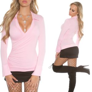 Top femme tendance col chemisier drapé JOY couleur KAKI