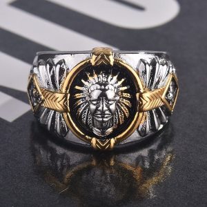 Bague Indienne Chef Amérindien (Plaqué Or)