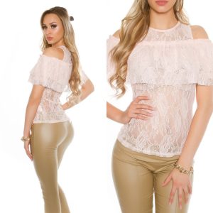 Top tout en dentelle large col sexy MELYSSA couleur saumon