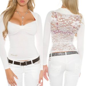 Top tout en dentelle large col sexy MELYSSA couleur blanc