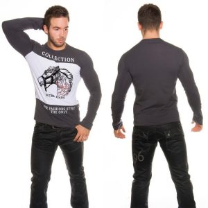T-shirt Homme manche longue stylé couleur gris foncé