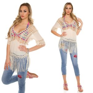 Top d’été femme tendance en crochet et franges JADE couleur beige