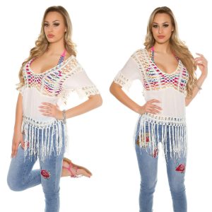 Top d’été femme tendance en crochet et franges JADE couleur blanc