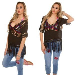 Top d’été femme tendance en crochet et franges JADE couleur noir