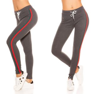 Jogging femme fashion SOPHIE couleur gris bandes rouges et vertes