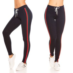 Jogging femme fashion SOPHIE couleur bleu bandes rouges et vertes