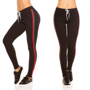 Jogging femme fashion SOPHIE couleur noir bandes rouges et vertes