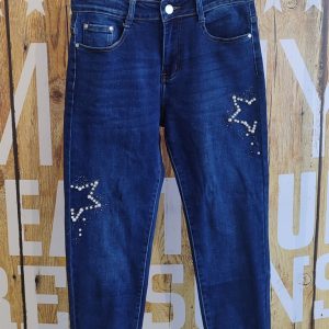 Jeans mom fit bleu foncé stars perles stretch