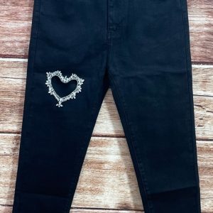 Jeans noir coeur strass stretch