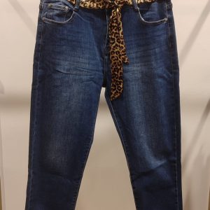 Jeans mom bleu avec ceinture foulard leopard