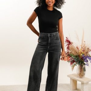 Jeans wide leg effiloché gris foncé large